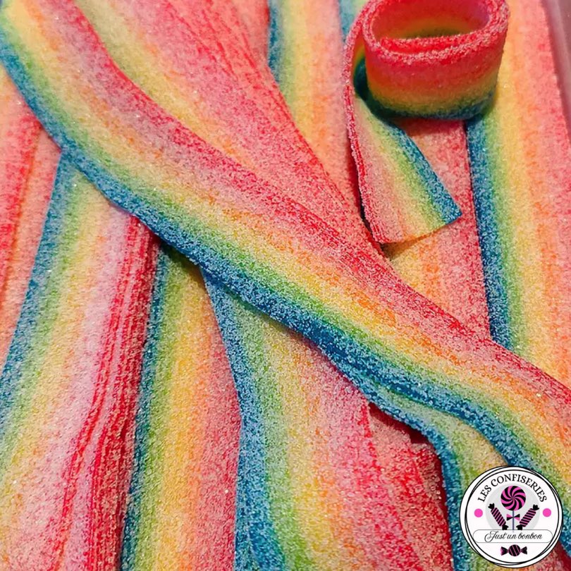 Ingrédients : (sous réserve de modifications effectuées par le fabricant) Sirop de glucose-Fructose, sucre, amidon, sirop de sucre inverti, farine de blé, eau, acidifiants E330, E296, maltodextrine, correcteur d'acidité E-332, graisse vegétale (palme), arome artificiel, agent d'enrobage : cire de carnauba, émulsifiant E-322, colorants E102, E129, E133, E110. Contient du GLUTEN.